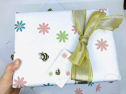 Cute Bumble Bee and Flower Wrapping Paper with FREE GIFT TAG