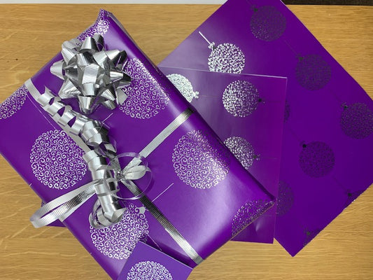 Luxury Silver Bauble Wrapping Paper with FREE Gift Tags,