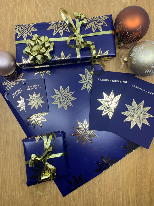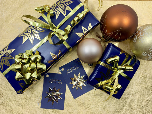 Luxury Gold Foil Star Wrapping Paper with FREE Gift Tags