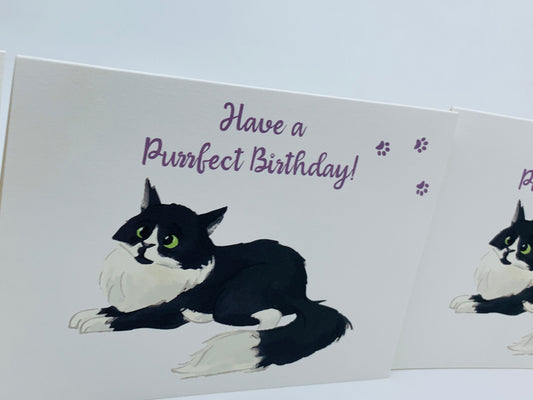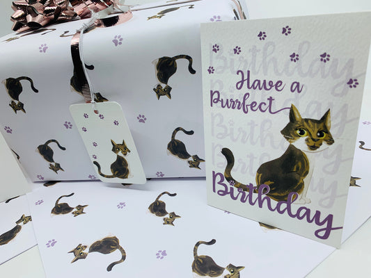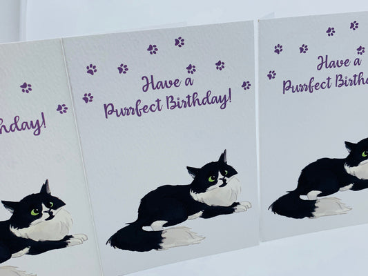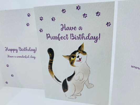 Cute Cat A6 Birthday Card HAVE A PURRFECT Birthday - FERGUS