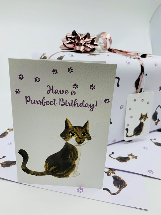 Cute Tabby Cat A6 Birthday Card Have a PURRFECT Birthday ISLA