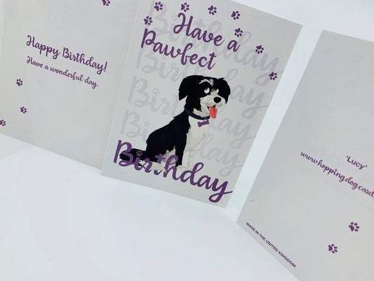 Cute Dog A6 Birthday Card with Envelope, LUCY Pawfect Birthday