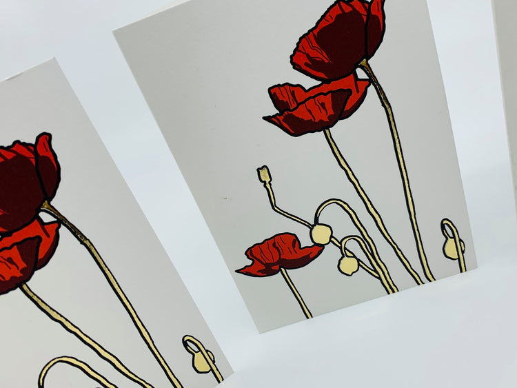 A6 Greetings Card Red Poppies with Gold Foil Stems