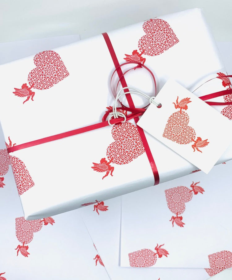 Hearts and Cupid Wrapping Paper with FREE GIFT TAG